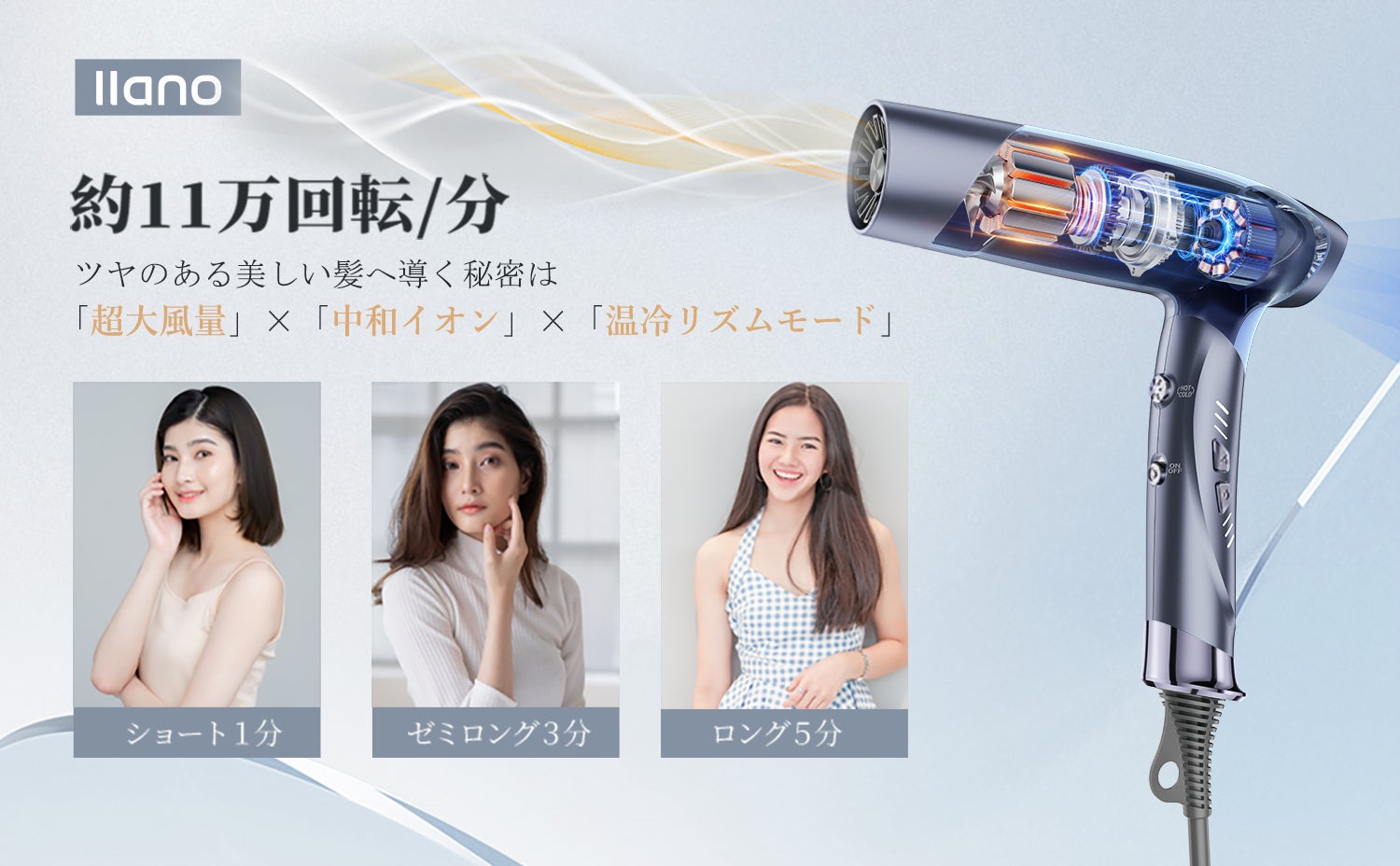 【2022年新登場】llano製品開発部はこれまで速乾型ドライヤーを深く研究し、無数回のドライヤーの研究開発成果に基づいて、3年間の美髪分野の科学技術革新を経験により、llano四代目速乾美髪ドライヤーを開発しました。