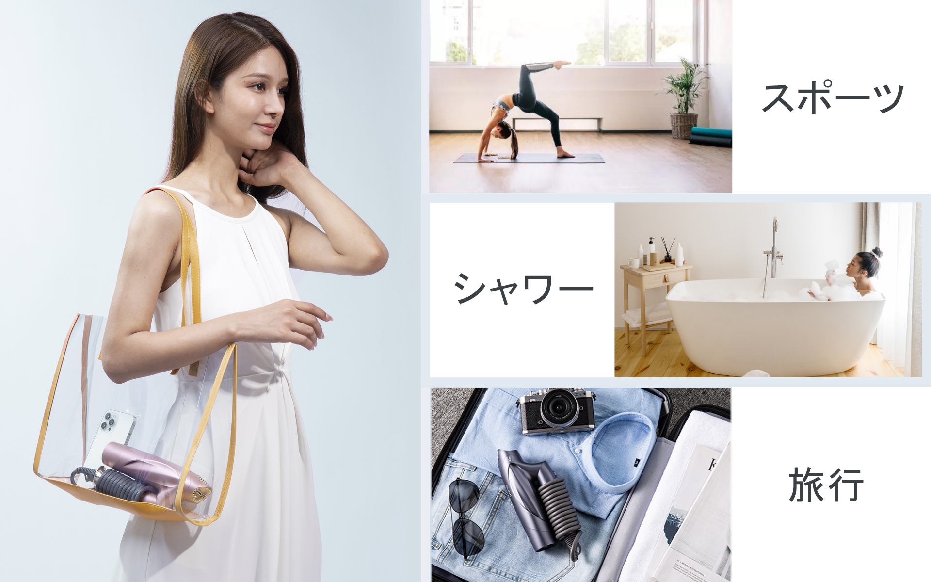 llanoヘアドライヤーは折り畳みでき、収納や旅行など、コンパクトになります。本体はわずか362gで、多数のドライヤーよりも軽いため、腕への負担を軽減し、ご使用中に腕が疲れることがありません。