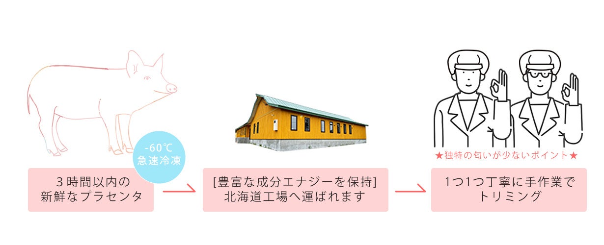 北海道工場と提携し、本物のプラセンタ美容を研究、開発しました。