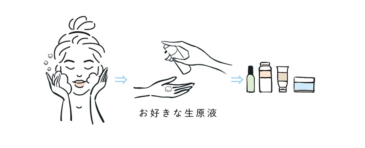 ■洗顔後、1プッシュを手に取りお顔全体になじませてください。すーっと肌に入る感覚を感じていただけます。また、気になる部分がある時は、もう1プッシュを手に取り気になる部分に重ね付けをおすすめいたします。その後、お手持ちの化粧水や乳液などをご使用ください。