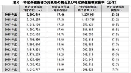 実際、厚生労働省公表の2019 年度の特定健康診査・特定保健指導の実施状況報告には、「2019 年度の特定健康診査受診者のうち、特定保健指導対象者は17.4%」であり、「特定保健指導対象者のうち、終了者は 23.2%」であることが記載されています。実施率は年々向上していますが、国が掲げている目標値「実施率45%以上(※1)」にはまだまだ及んでいないのが現状です。