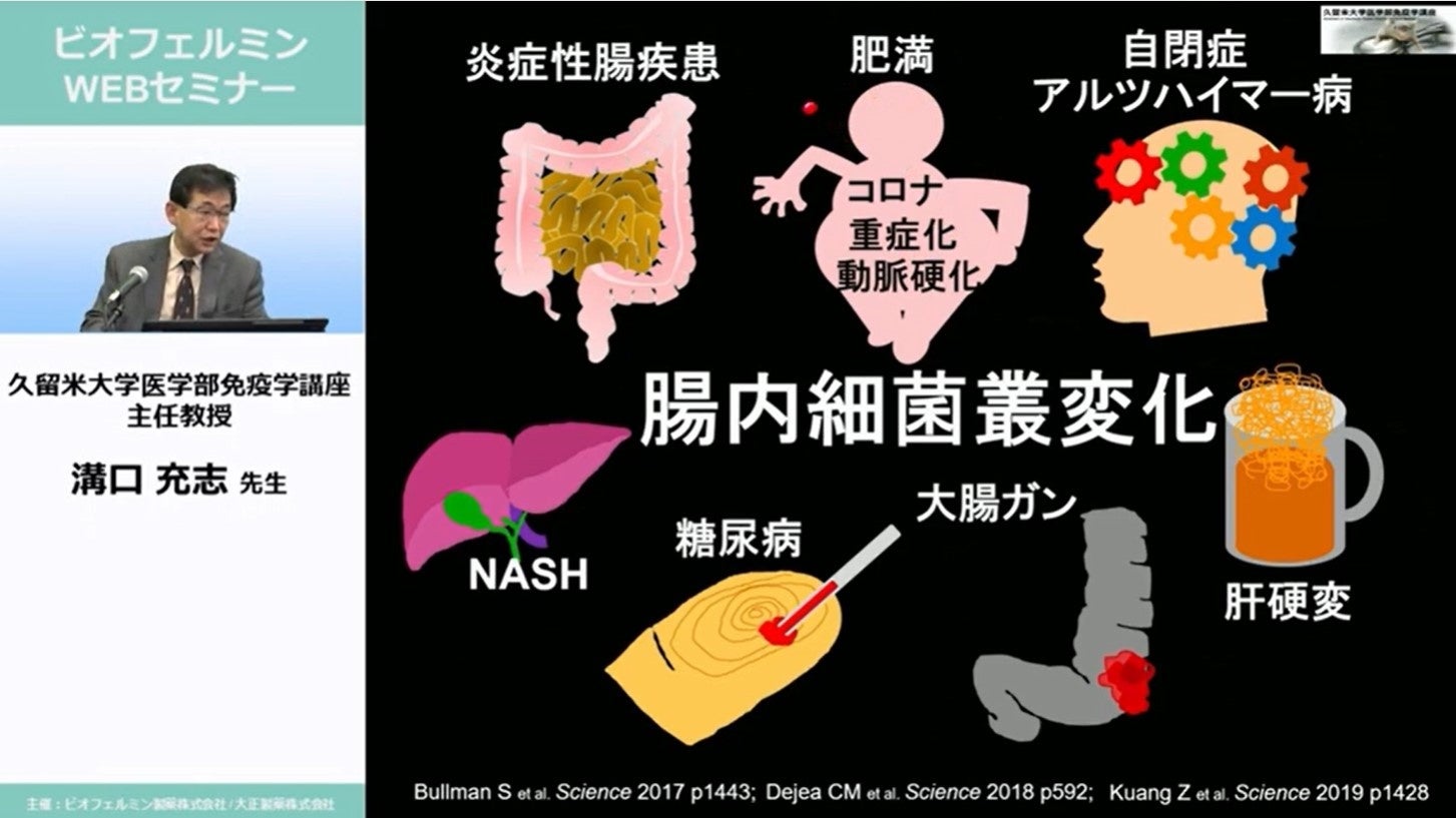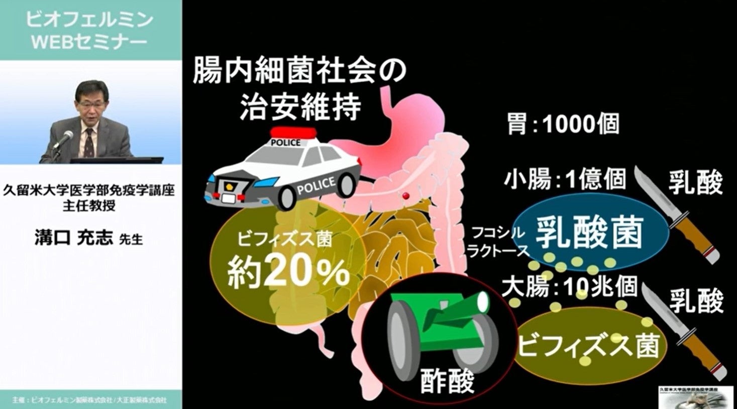 ビオフェルミン製薬株式会社(本社:神戸市 社長:久乗俊道)は、久留米大学医学部免疫学講座主任教授 溝口充志(みぞぐち あつし) 先生が、2022年1月28日(金)に医師・医療関係者向けに行った ビオフェルミンWEBセミナー「おなかの免疫から知る健康法」の講演内容を公開いたします。