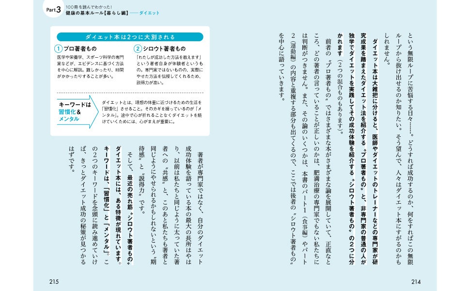 ■1つの「基本ルール」を紹介するにあたって、まずはそのテーマ(上の画像では「ダイエット」)について語っている健康書ジャンルの最近の動向を、プロ編集者の視点で分析・解説。