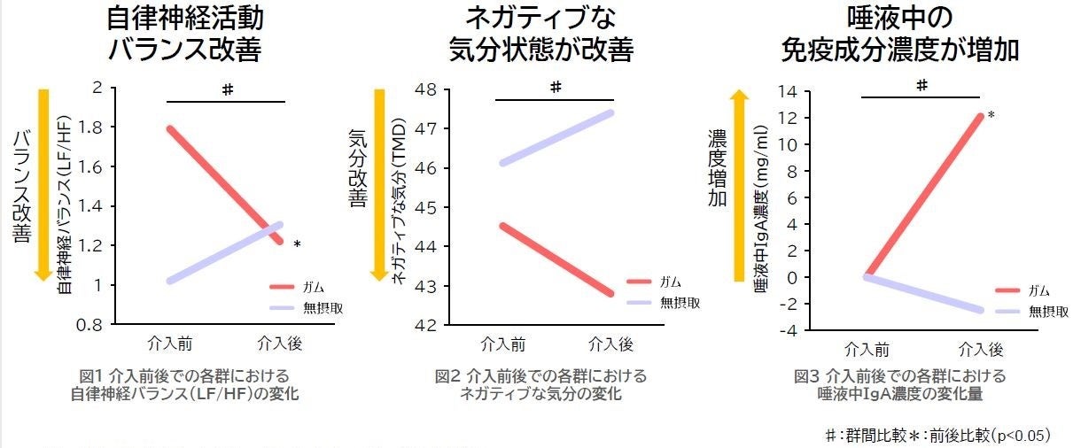 ガム継続摂取による免疫および自律神経、ストレスへの影響 - オープンランダム化並行群間比較試験 -