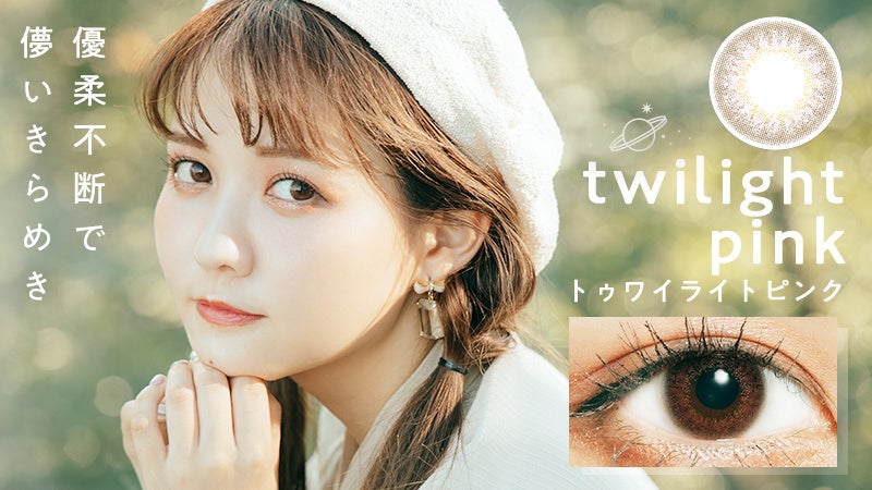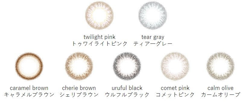 この度、“もっとときめく自分”になれる新色2色を追加。ピンク・ブラウン・イエローをブレンドしたこだわりのカラーで、ナチュラルな甘顔へと導く「トゥワイライトピンク」、引き込まれるような上品さで、垢抜けた印象を与える「ティアーグレー」が新たに加わりました。自然な色味とデザインで“カラコン初心者”でも使いやすい既存カラー5色に加え、ほんのり印象を変えられる“おしゃれ上級者”にもおすすめの新色が追加されたことで、その日の気分やシーンに合わせて使い分けがお楽しみいただけます。