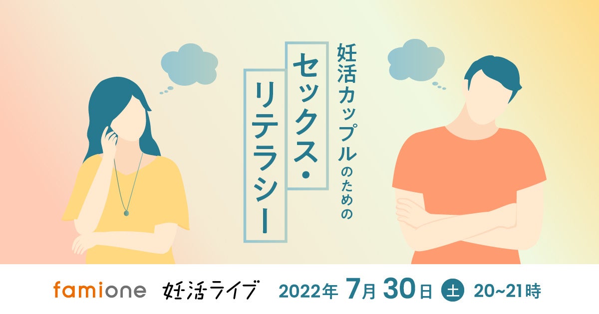 「子どもを願うすべての人によりそい 幸せな人生を歩める社会をつくる」をビジョンに掲げ、LINEを活用した妊活コンシェルジュサービス「famione(ファミワン)」 https://lp.famione.com/ を提供する株式会社ファミワン(本社:東京都渋谷区、代表取締役:石川勇介、以下当社)は、「妊活ライブ」上にて、7月30日(土)に「妊活カップルのためのセックス・リテラシー」と題したオンラインセミナー(https://famione.com/live/before/220730/)を実施します。「妊活ライブ」会員サービスでは、月額500円で毎月セミナーの参加と100本以上のアーカイブ動画の視聴がご利用いただけます。