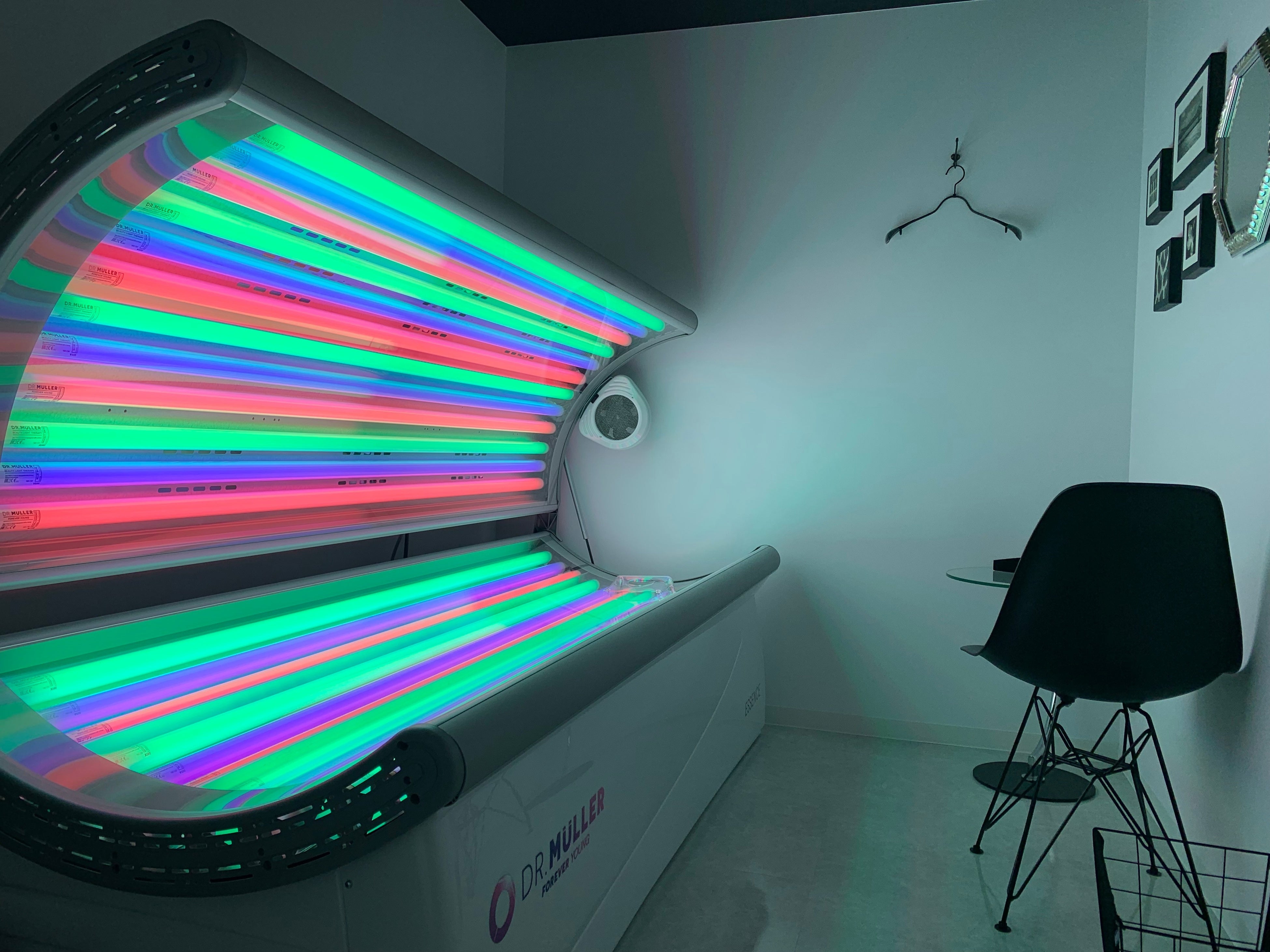 日本初導入となるエステマシンは「ライトセラピーマシン」と呼ばれる最新美容マシンです。3色の可視光線が真皮層に働きかけ、良質なコラーゲン生成を促すとともに、太陽の光と同じ照度である光を浴びることにより、体内時計を正しく動かし、自律神経のバランスを図ります。身体の内面からと外面からのアプローチによる美しく健康な身体作りをお手伝いいたします。