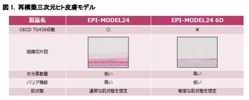 そこで、6社が共同し、株式会社ジャパン・ティッシュ・エンジニアリングの再構築三次元ヒト皮膚モデルEPI-MODEL24(図1左)を用いて、化粧品で汎用される16成分の試験を行いました。複数社で試験と検証をすることにより、信頼性があり、かつ化粧品業界の各社にとっても利用可能で有益なデータを取得することができました。(図2青丸)