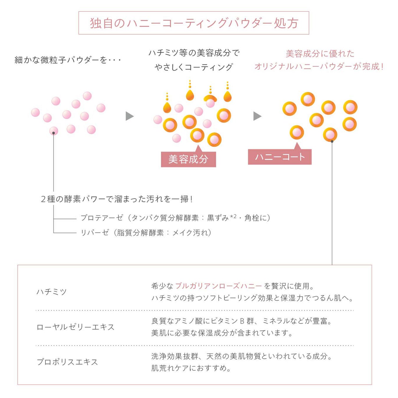 - 洗顔でスペシャルケア。はちみつ肌*2に磨き上げるハニー酵素洗顔パウダー。