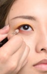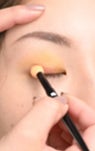 イエローカラーをアイホールに広めにのせ、目の周りを囲むようにテラコッタオレンジをオン。