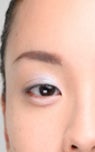 目頭側のアイホール1/3程度にブルーのアイシャドウをオン。