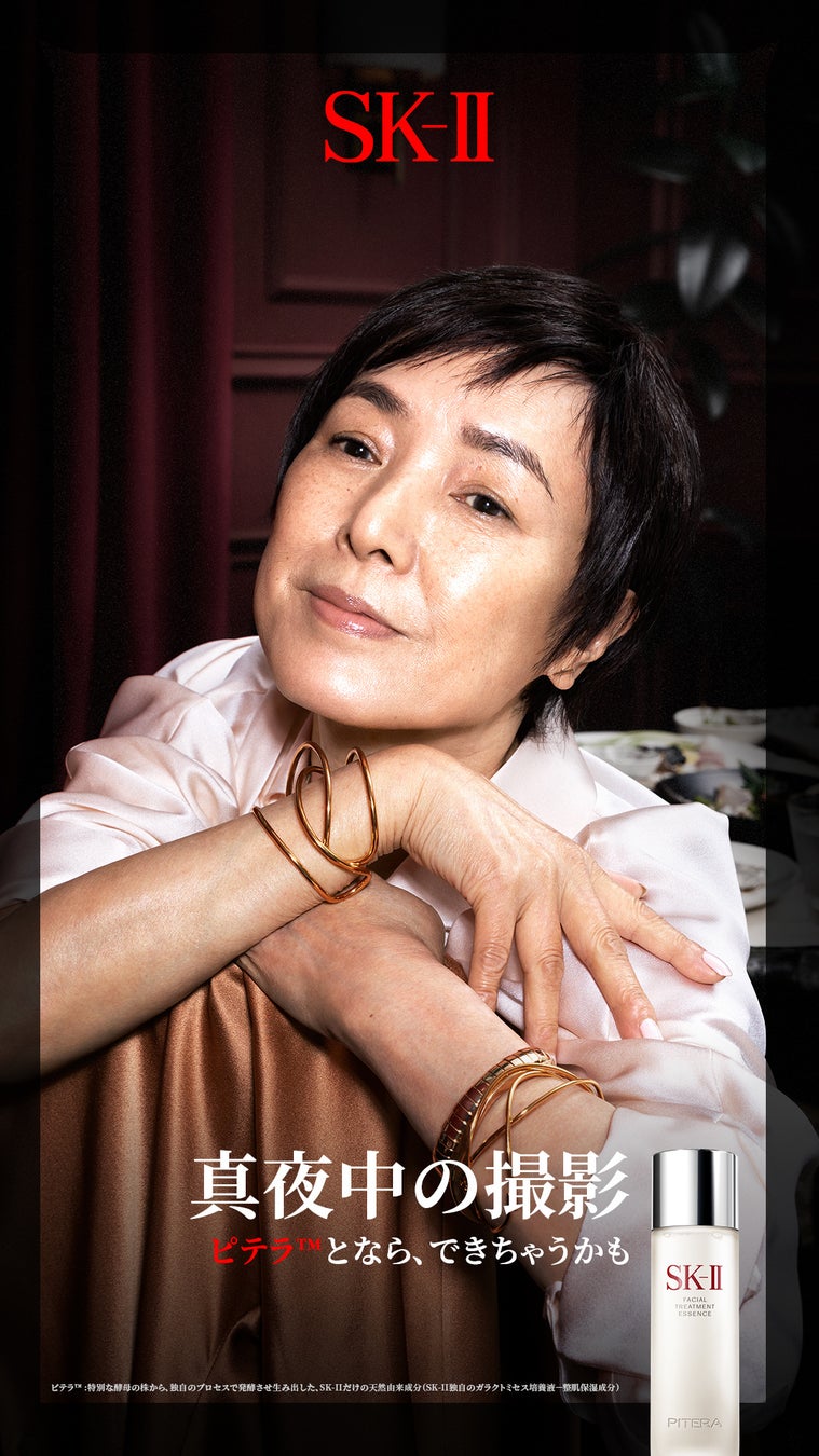 「SK-IIの型破りなところがとても好きです。肌をテストするというアイデアに興味をそそられました。ピテラ™️エッセンスを長年愛用しているので、真夜中でも自信を持って素肌を見せることができました」—— 桃井かおりさん