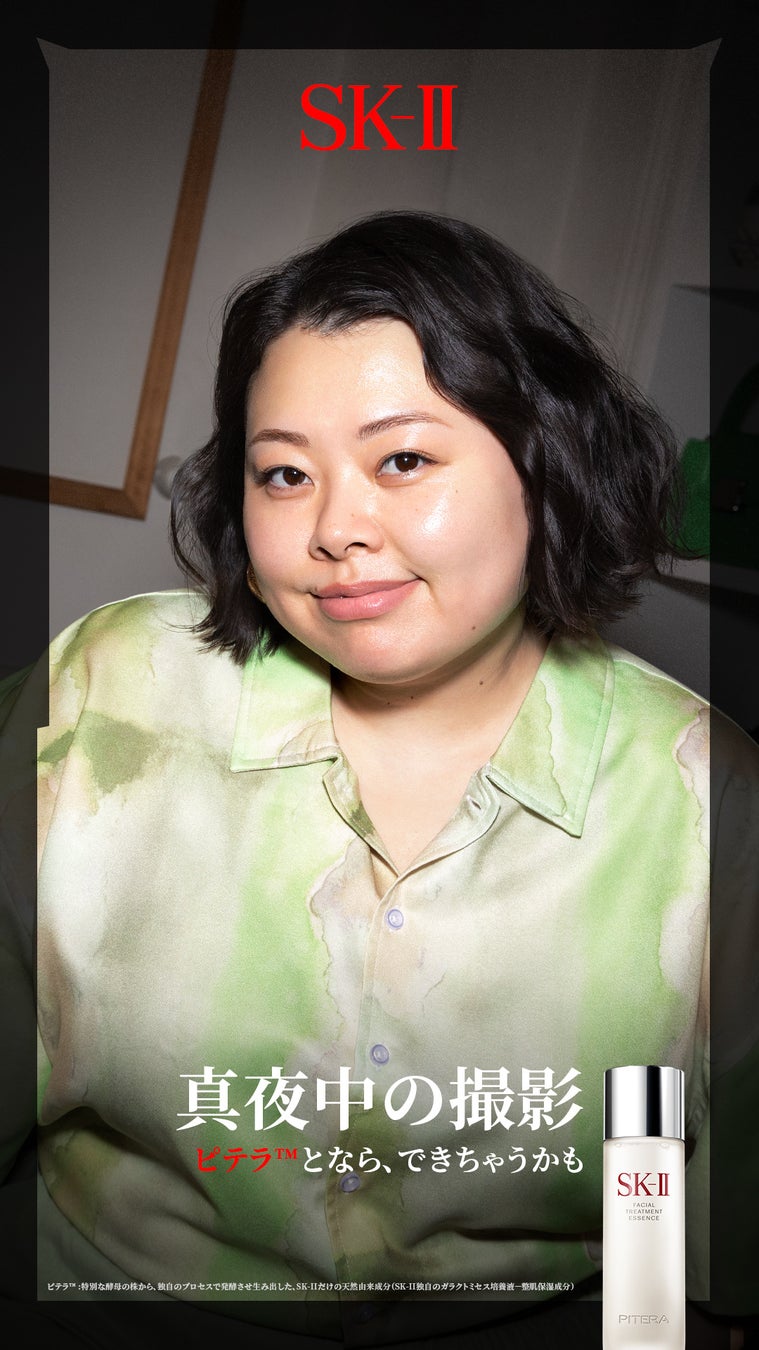 「どうする?真夜中の撮影」キャンペーンでは、ブランドアンバサダーがピテラ™エッセンスとピテラ™配合のSK-II製品で肌を整え、素肌で撮影に挑みました。