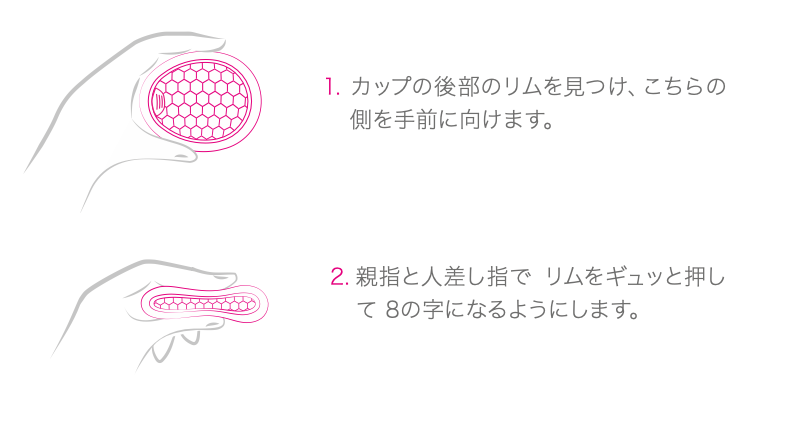・初回以降の使用時:使用前と使用後は、中性石鹸とお湯、または専用のクリーナーで洗浄してください。石鹸や洗剤が残っていると炎症を起こす可能性があるため、よく洗い流すようにします。より完全に洗浄するにはカップを必要に応じて煮沸消毒してください。