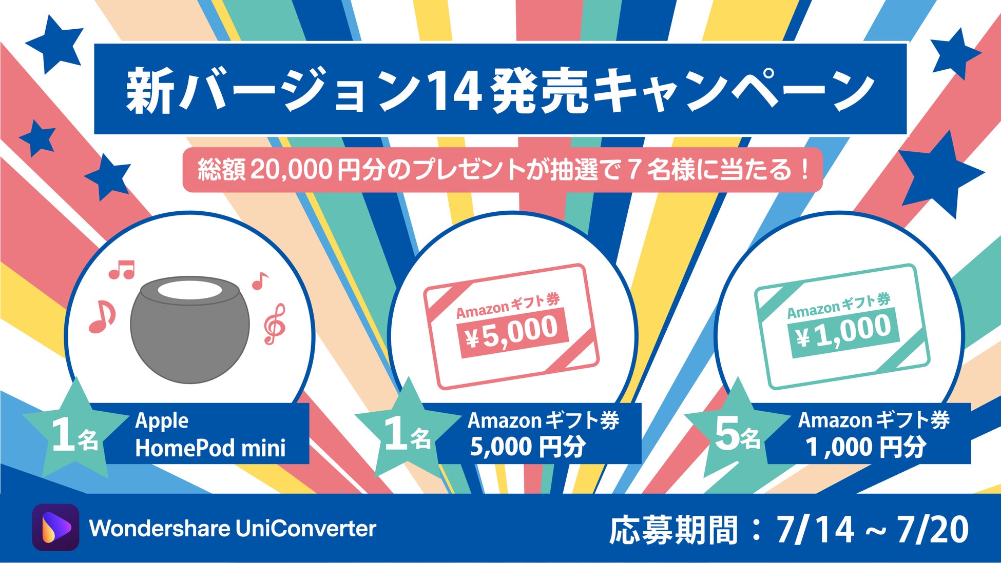 株式会社ワンダーシェアーソフトウェア(東京都千代田区、代表:呉太兵)の豊富な機能を搭載した動画ダウンロードソフトWondershare UniConverter(ユニコンバーター)の公式Twitterアカウントにて【Amazonギフト券 5,000円分】を含む豪華賞品が貰える七夕キャンペーンを実施中!
