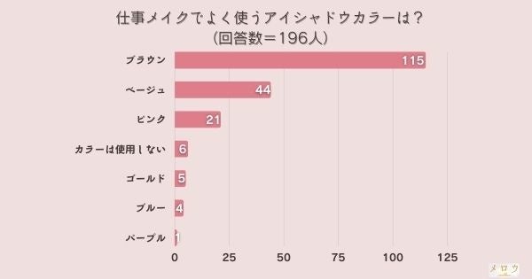 「仕事メイクでよく使うアイシャドウカラーは?」とアンケート調査した結果、1位は『ブラウン』でした。