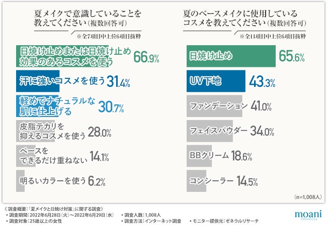 そこで今回、オーガニックコスメブランド『moani organics』(https://moani-organics.com/)を展開している株式会社フォーチュン(https://4tune-int.com/)は、25歳以上の女性を対象に、「夏メイクと日焼け対策」に関する調査を実施しました。