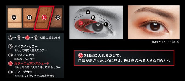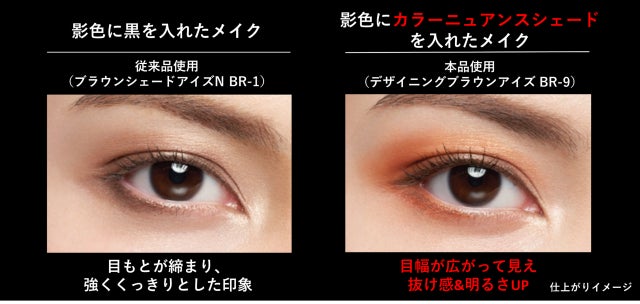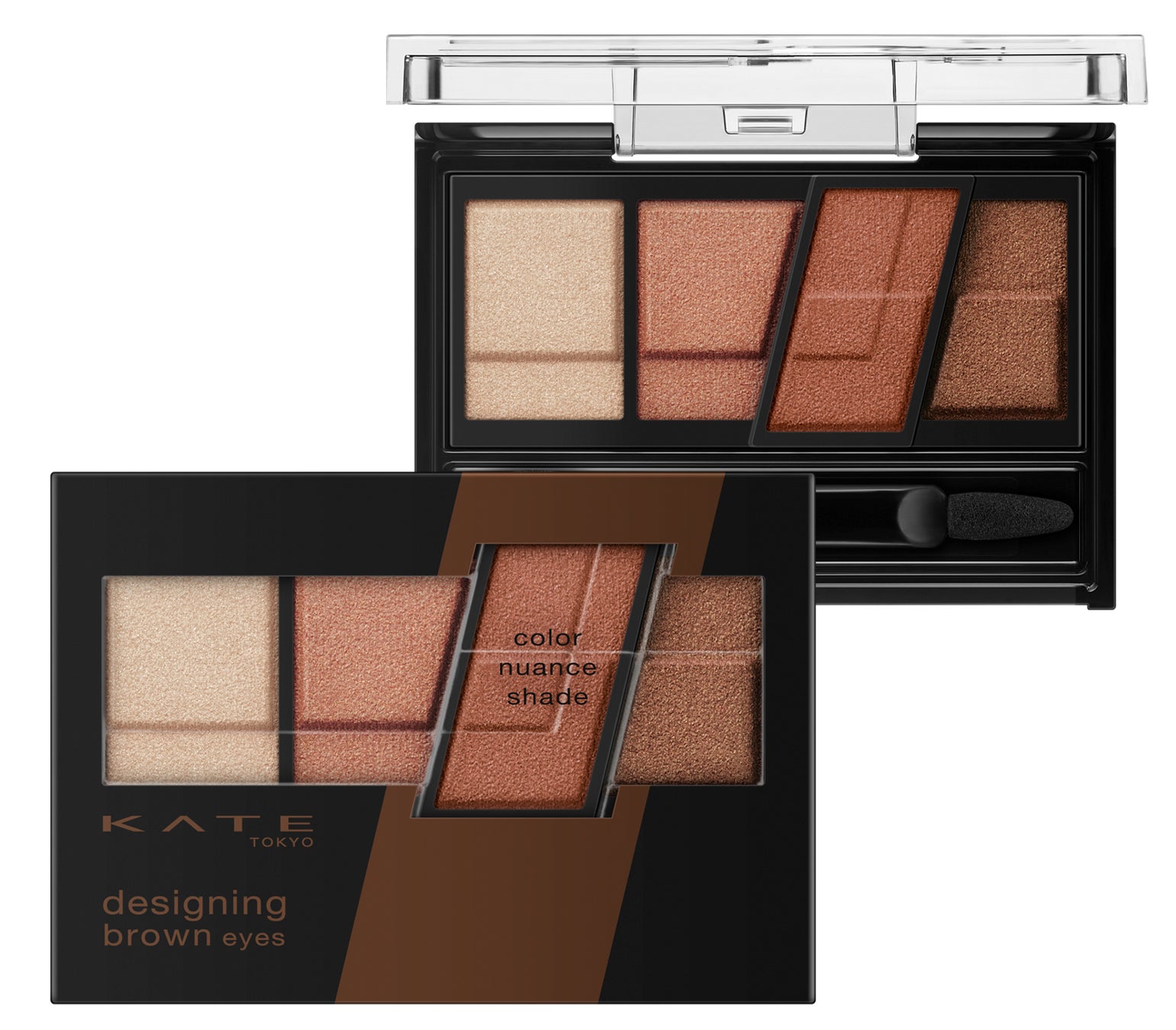 ベーシックで使いやすい、メイクの定番として人気のブラウンシャドウ。「ケイト デザイニングブラウンアイズ」は、そのベーシックなブラウンシャドウに、明るいカラーの影色“カラーニュアンスシェード”を組み合わせることで、使いやすいだけでなく、抜け感のある大きな目もとを演出します。ポイントは、目尻に入れるカラーニュアンスシェード。目尻にぼかしながらなじませることで、目幅が広がったように見え、印象的な大きな目もとに仕上がります。この「デザイニングブラウンアイズ」から、新色2種を発売いたします。