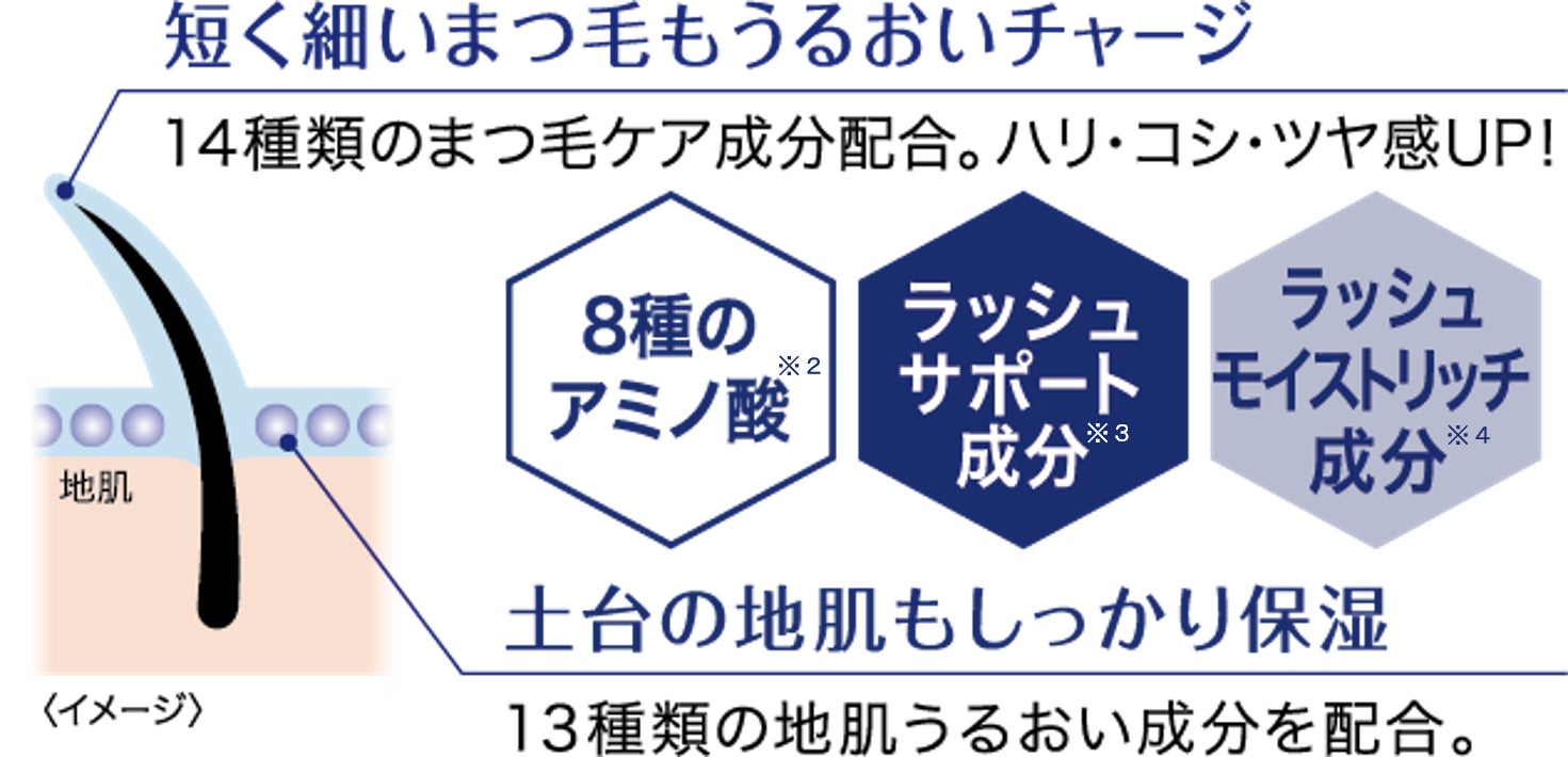 ※2 セリン、グリシン、グルタミン酸、アラニン、アルギニン、リシン、トレオニン、プロリン(すべてまつ毛うるおい成分)