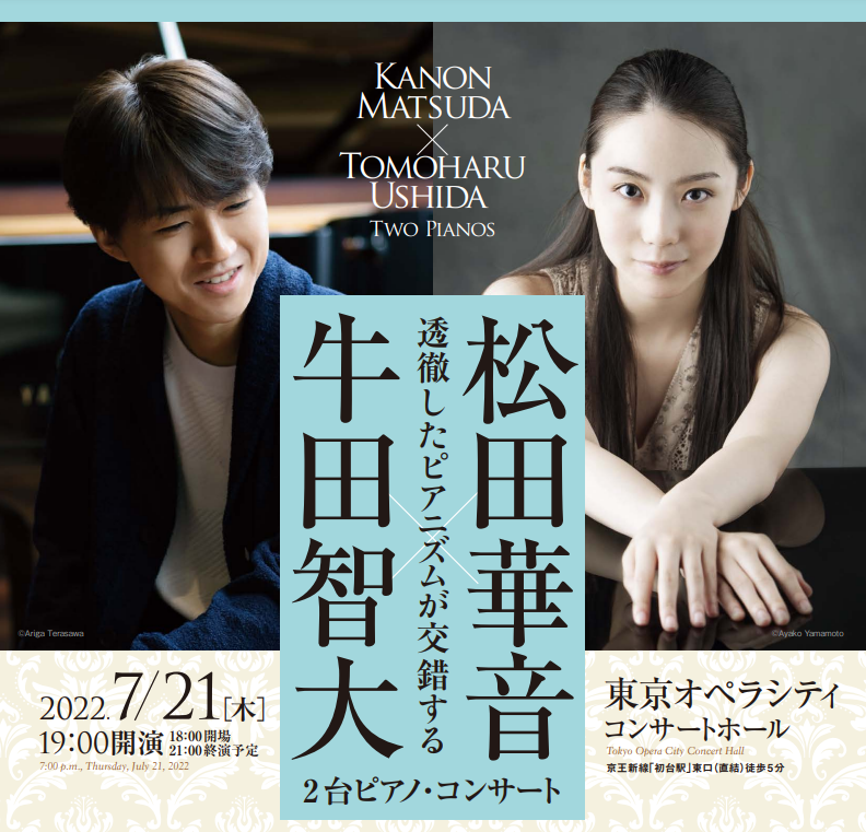 若手人気ピアニストの松田華音さんと牛田智大さんによる今回のコンサートは、それぞれのソロの演奏と共に2台のピアノによる演奏をお楽しみいただけます。作曲家と同時に大ピアニストの作品から構成されるプログラムを、2人がどのように演奏するのかという点も見どころです。特に牛田さんは、プログラムの中のプロコフィエフの「シンデレラ組曲」を楽しみに聴いてほしいと述べており、2人のピアノの共演がどのようなハーモニー、個性を生み出してくれるのか期待のコンサートになっております。