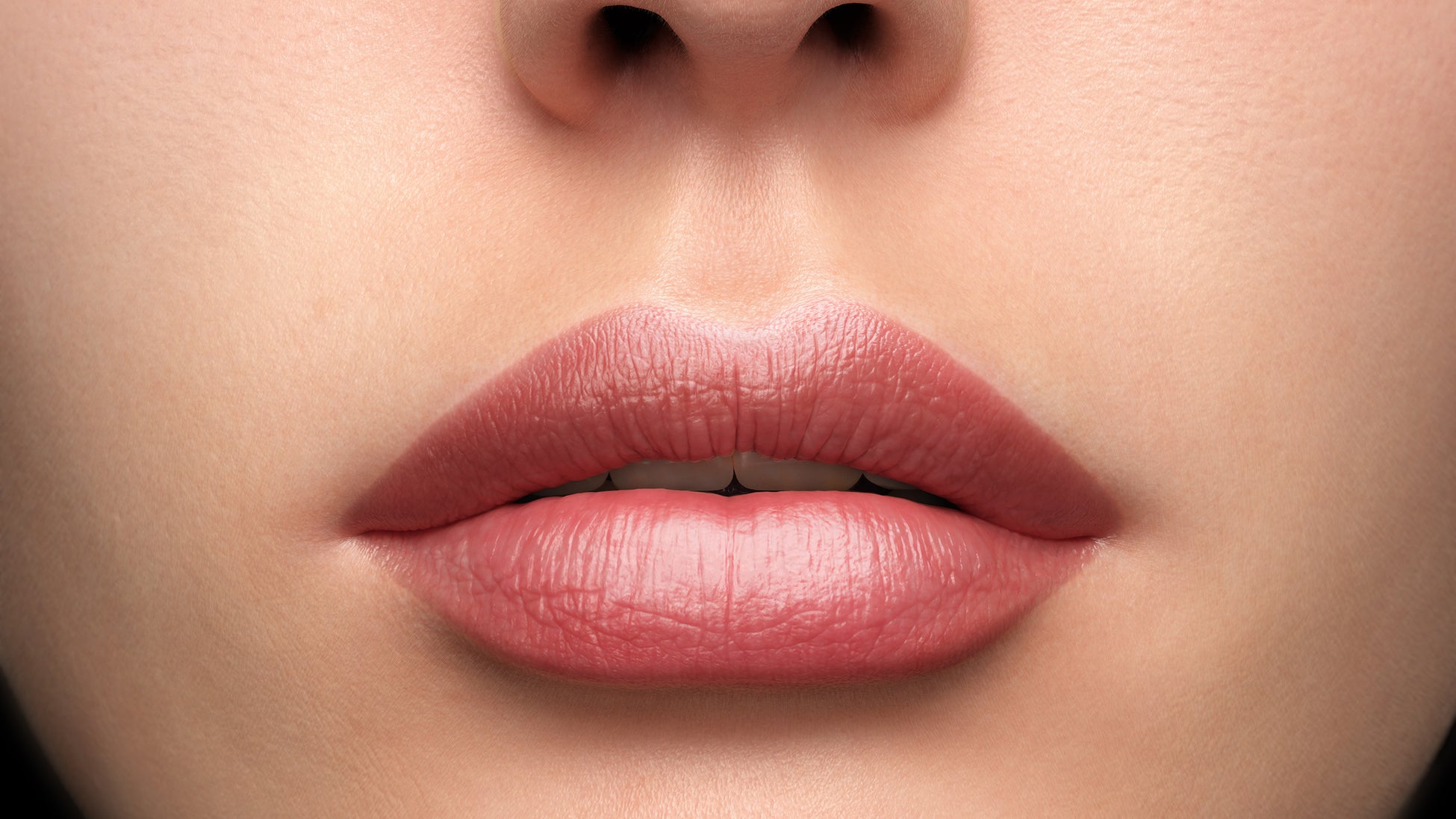 くちびるの輪郭より内側に小さく塗り、指で軽くぽんぽんとぼかしてください。