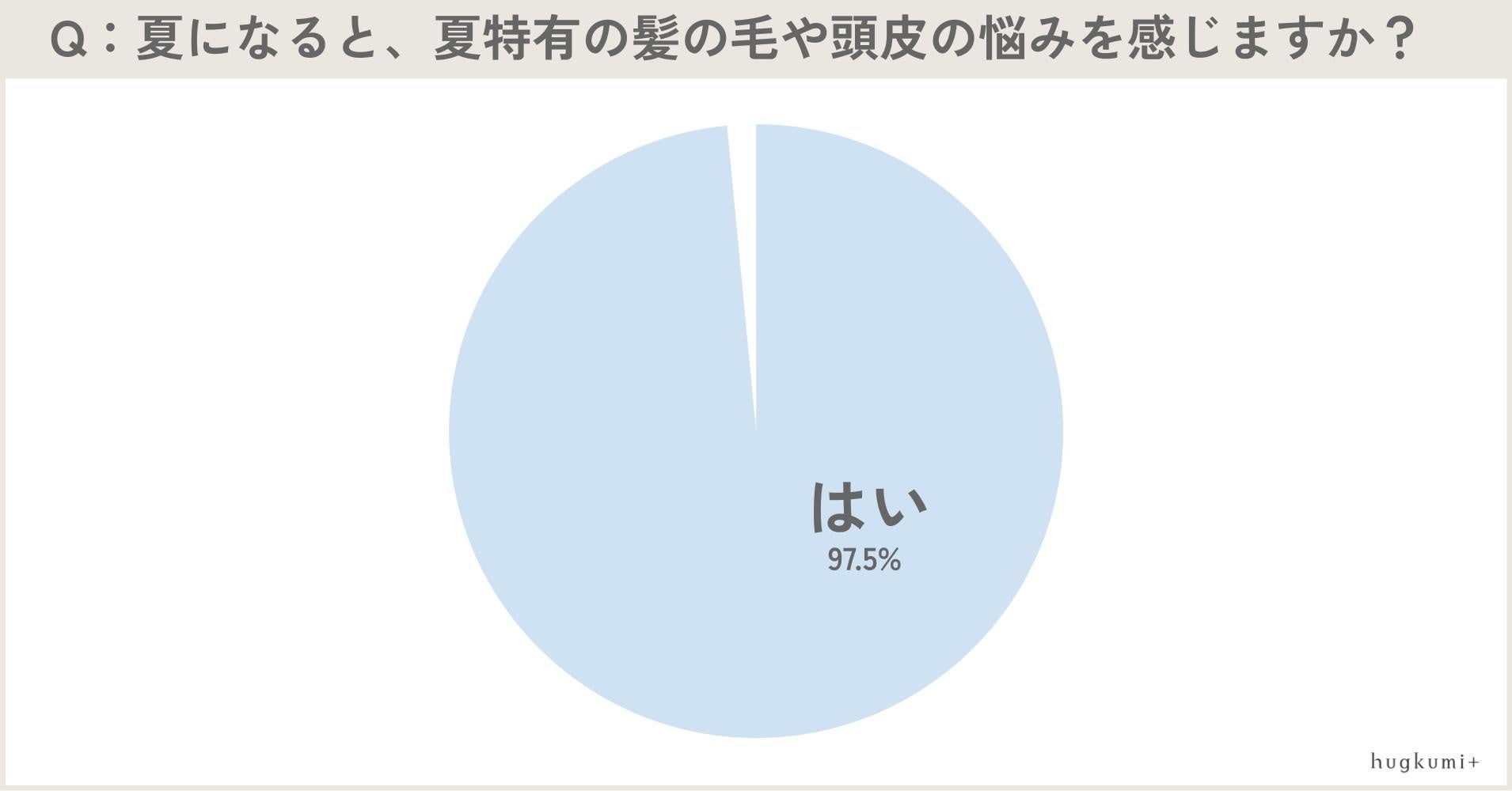 「夏になると、夏特有の髪の毛や頭皮の悩みを感じますか?」という質問に、20~40代女性200人の約98%が「はい」と回答しました。