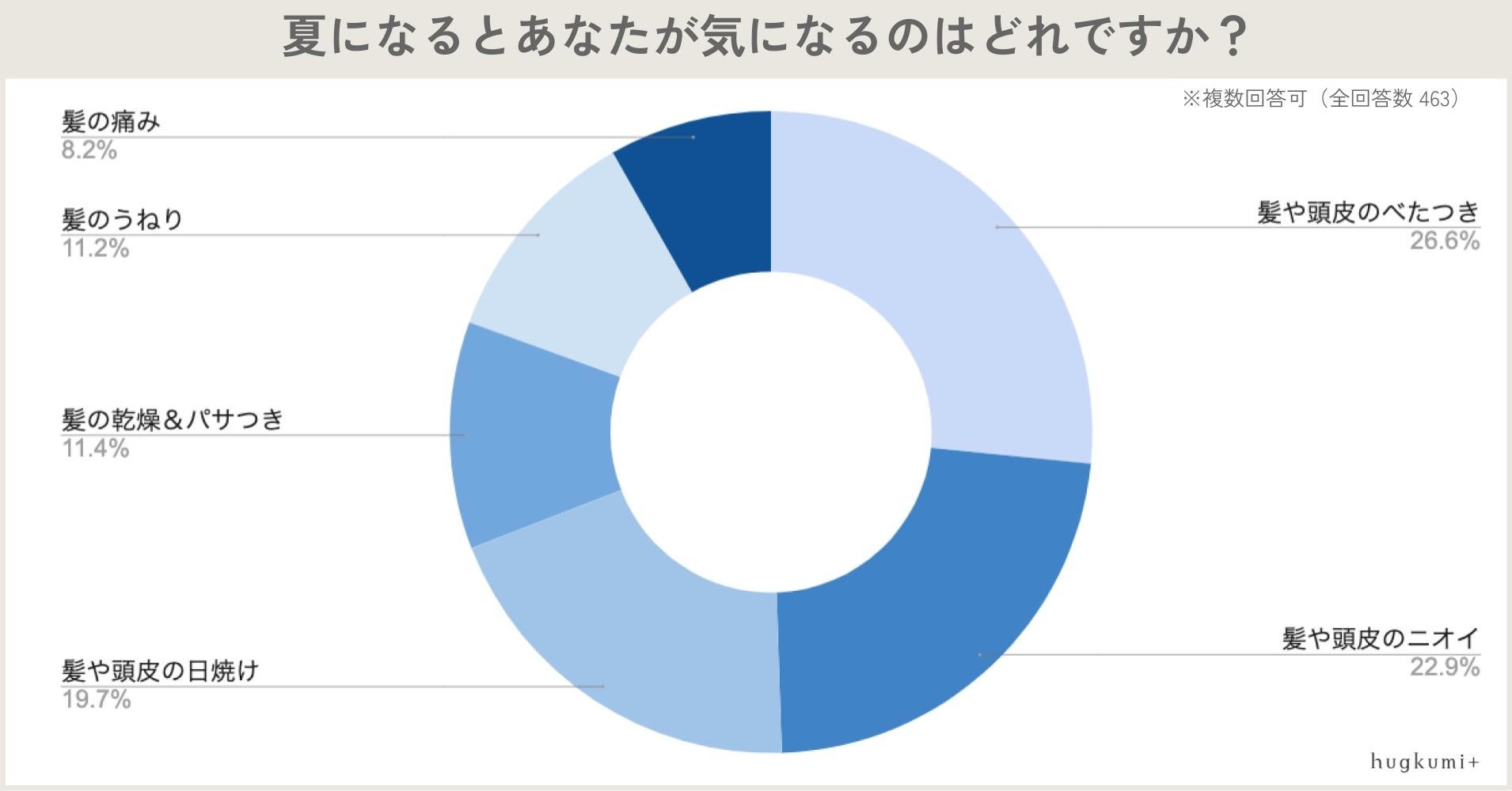 その後「髪や頭皮のニオイ(22.9%)」「髪や頭皮の日焼け(19.7%)」と続きました。