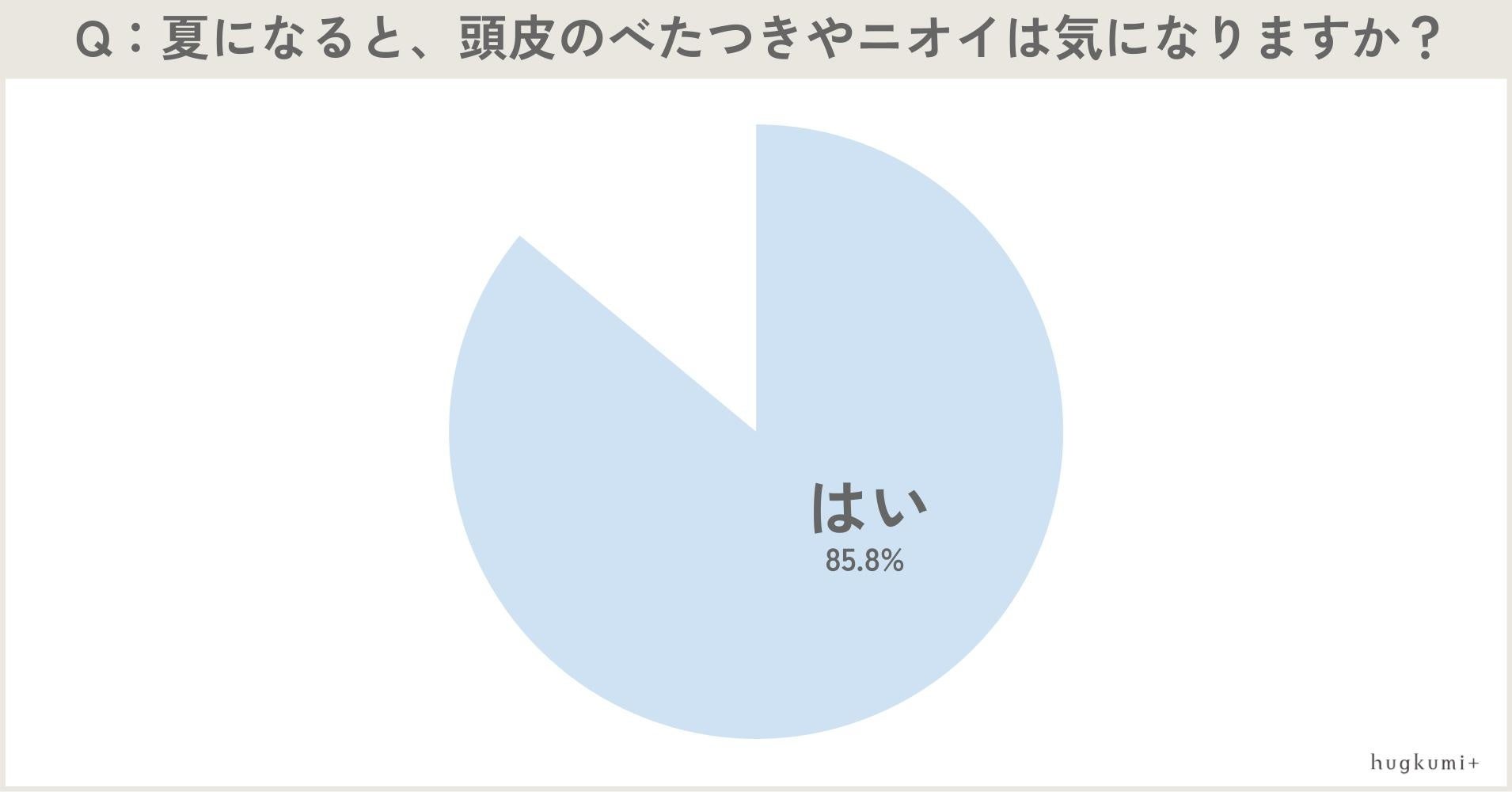 20〜40代女性200名に「夏になると頭皮のべたつきやニオイが気になりますか?」と聞いたところ、85.8%が「はい」と回答しました。