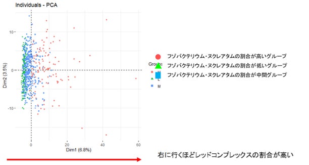 図2 フゾバクテリウム・ヌクレアタムの割合に応じて分類したグループのβ多様性