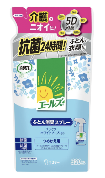 今日は「消臭力」でおなじみのエステーから販売されているこうした介護現場のニオイの悩みに応えて開発をされた介護専用の消臭剤・脱臭剤「エールズ」。