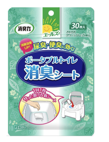 ポータブルトイレのニオイには「エールズ 消臭力 ポータブルトイレ消臭シート」がおすすめ。