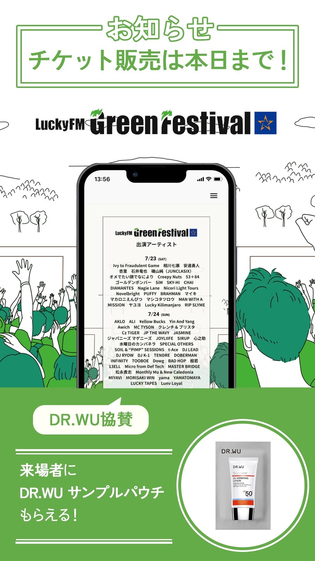 Lucky FM 茨城放送が「音楽と食とアートの祭典」として5つの「コンセプトで「Lucky FM Green Festival」を開催。「茨城のフェス文化の灯を消すな!」を合言葉に、地元密着型のフェスでこの夏、茨城を元気に盛り上げます。