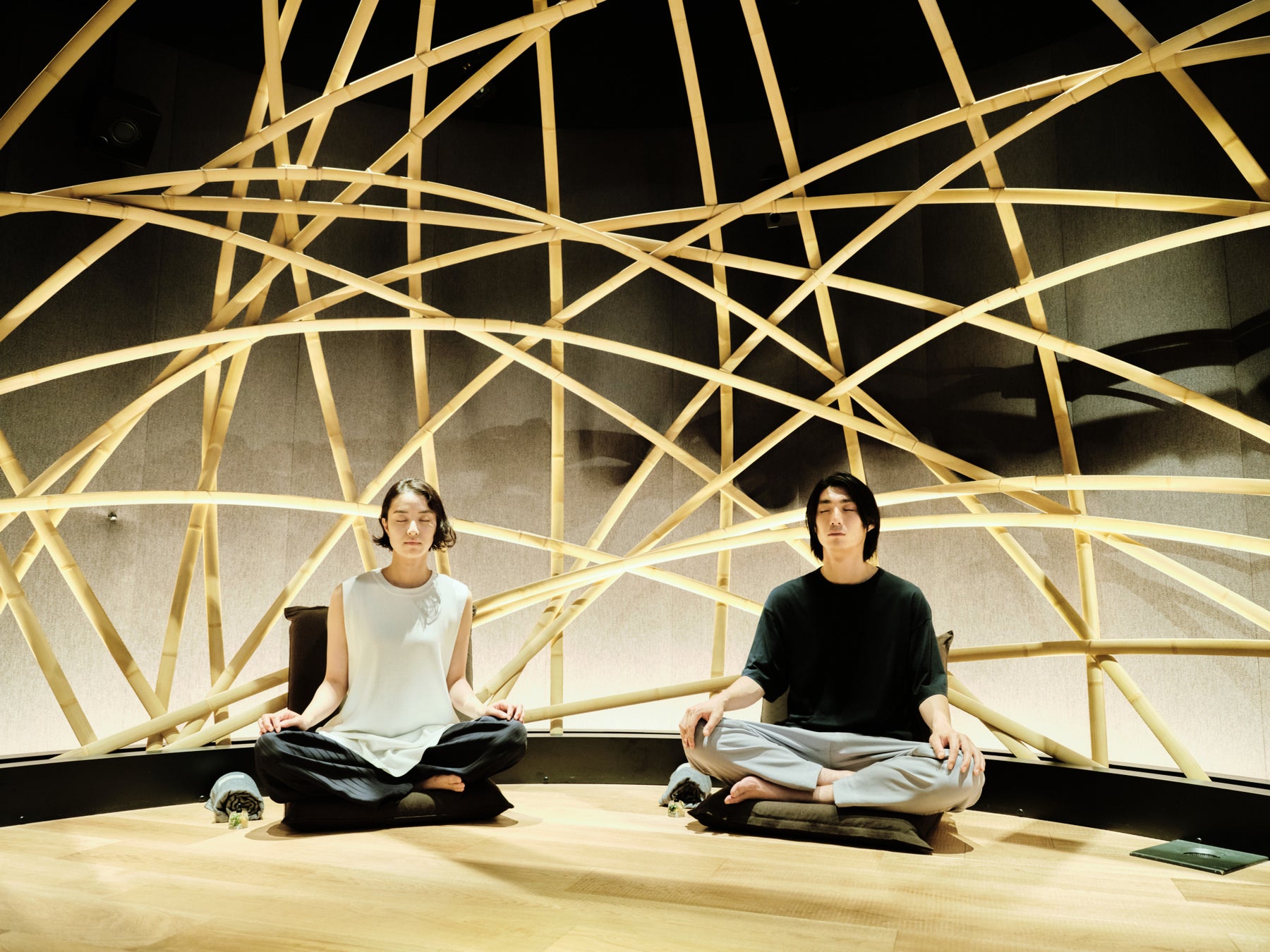 メインは、竹のドームでのガイダンスメディテーション。 内面を整えるオーディオガイダンスを6種類(日・英)のコースから気分にあわせて選んで頂けます。