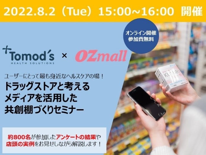 会員400万人の女性サイト「OZmall(オズモール)」(https://www.ozmall.co.jp) を運営するスターツ出版株式会社(本社:東京都、代表取締役社長:菊地修一)は、首都圏を中心に148店舗のドラッグストアを展開する株式会社トモズ(本社:東京、代表取締役社長:德廣 英之 )とともに2022年8月2日(火)に、「トモズ×OZmall 共創棚づくりセミナーオンラインセミナー」を開催、セミナー参加者を募集いたします。