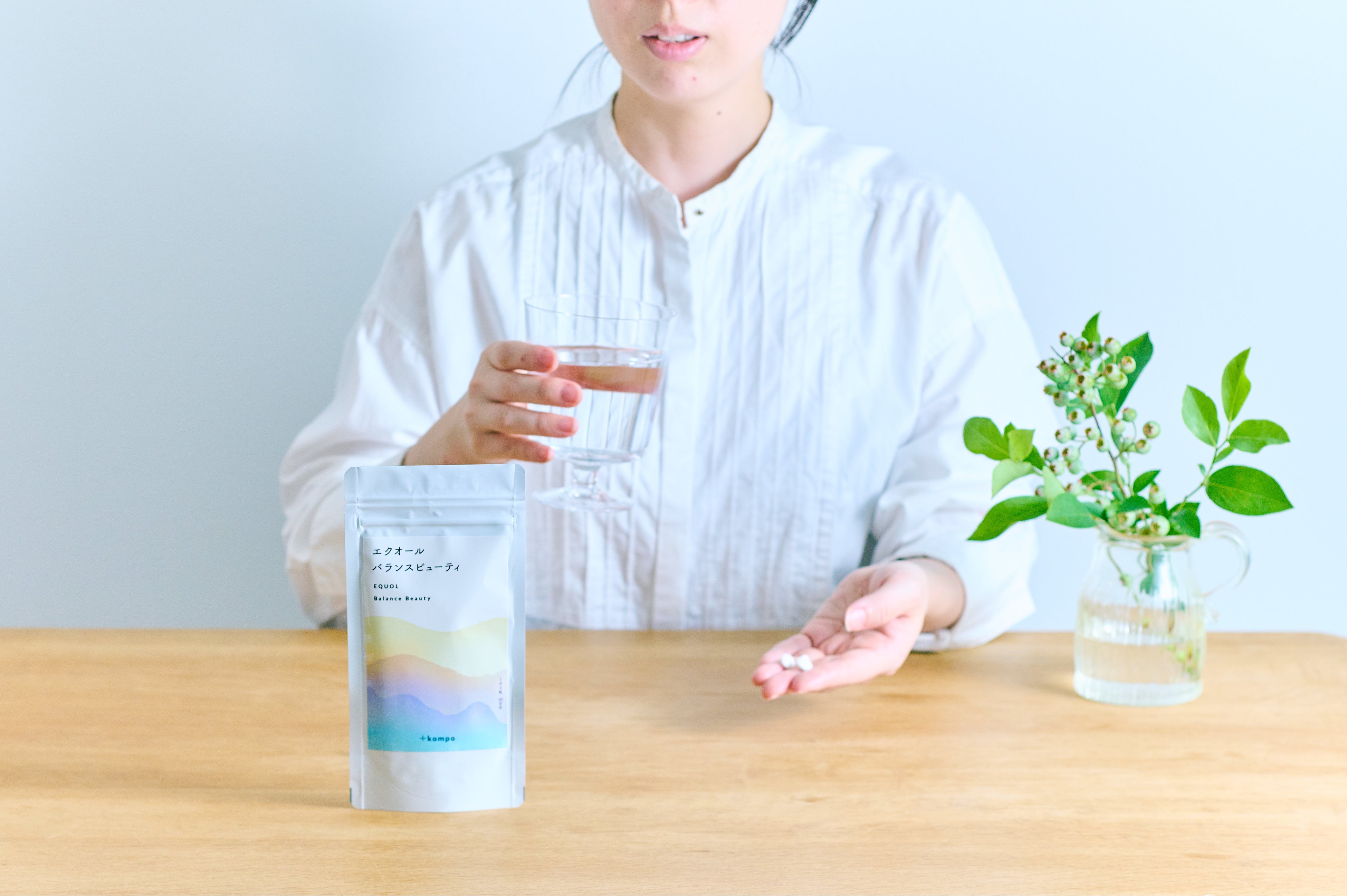 そこで、この度「+kampo」では、多くの女性のお悩みによりお役にたてるよう、エクオールに漢方薬成分を配合したサプリメント商品『エクオール バランスビューティ』を開発するに至りました。本製品は、漢方薬を専門的に取り扱う私たちが”ビューティ”と”ウェルネス”の2つの面から、なりたい自分に近づくために作った漢方サプリメントです。