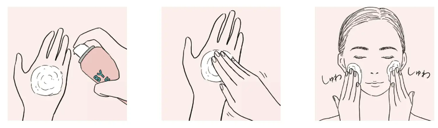 ③目を閉じて、顔の気になる箇所へパッドを押し当ててなじませてください。