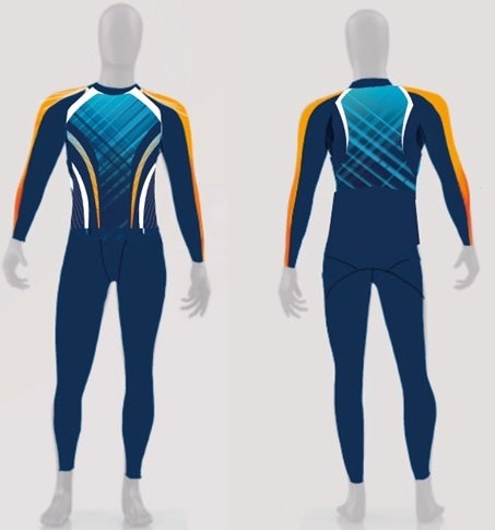 デザインテーマは疾走感です。疾風や炎をイメージし、青を基調とした爽やかで明るい色と、パワーを感じさせる活力あるオレンジを差し色にデザインしました。また、腕の部分は筋肉を連想させるデザインを取り入れました。腕部分の色をはっきりと分けることで、動きがわかりやすくなり、練習やレースのフォームチェック時にマーカー機能を果たします。