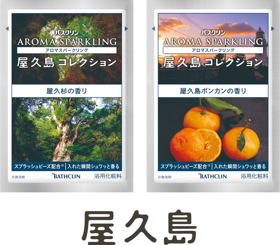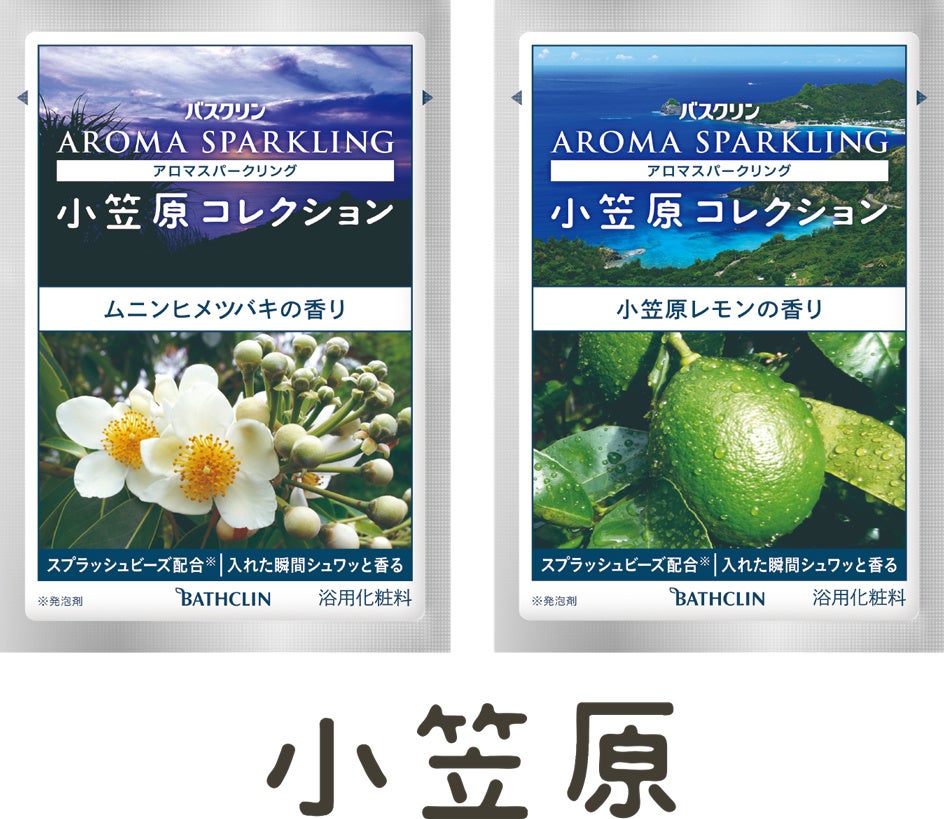 「スプラッシュビーズ®」(発泡剤)の瞬間発泡により、香りがはじけて広がり、全身で香りを楽しめる入浴料「バスクリン アロマスパークリング」シリーズから、「バスクリン アロマスパークリング ナチュラルバス」シリーズは、世界自然遺産の「現地感」をテーマに、現地を体感して開発した香りを楽しめ、非日常感を味わえるとご好評いただいております。これまで発売した小笠原・屋久島・知床・白神山地4つのコレクションから、それぞれ2アイテムを厳選してひとつにまとめた「ナチュラルバスコレクション」を8月8日(月曜日)に新発売いたします。各地の貴重な植物や特産果実をイメージした香りで、世界自然遺産の地へ行った気分を、ぜひお楽しみください。