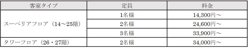 ※別途、スーペリアフロアでの素泊まりプランもご用意しております。