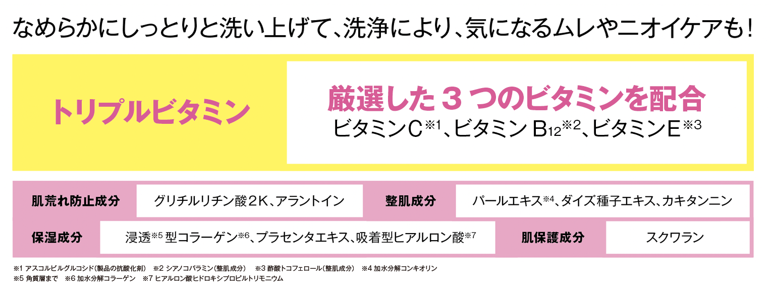 ※2 洗浄により、ニオイやくすみのもととなる汚れ・古い角質を落とす。