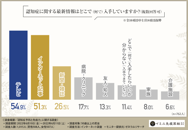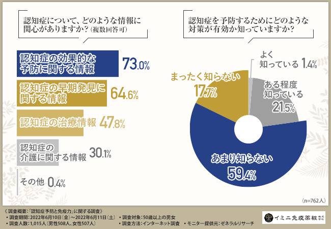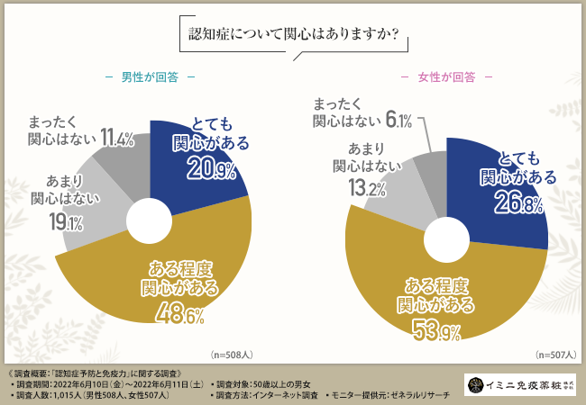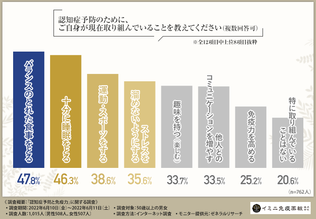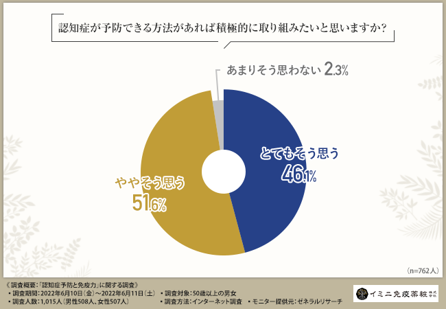 そこで今回、イミニ免疫薬粧株式会社(https://www.imini-immunity.jp/)は、50歳以上の男女を対象に、「認知症予防と免疫力」に関する調査を実施しました。