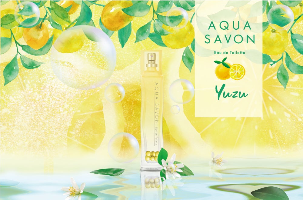 清潔感のあるシャボンとゆずの爽やかさを表現。爽やかなゆずの香りを水彩画風パッケージデザインで再現