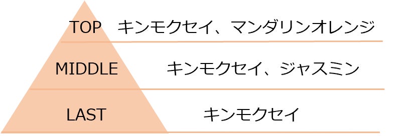 トップからラストまで香る甘くやさしいきんもくせいに、清潔感のあるシャボンが調和した上品な香り。