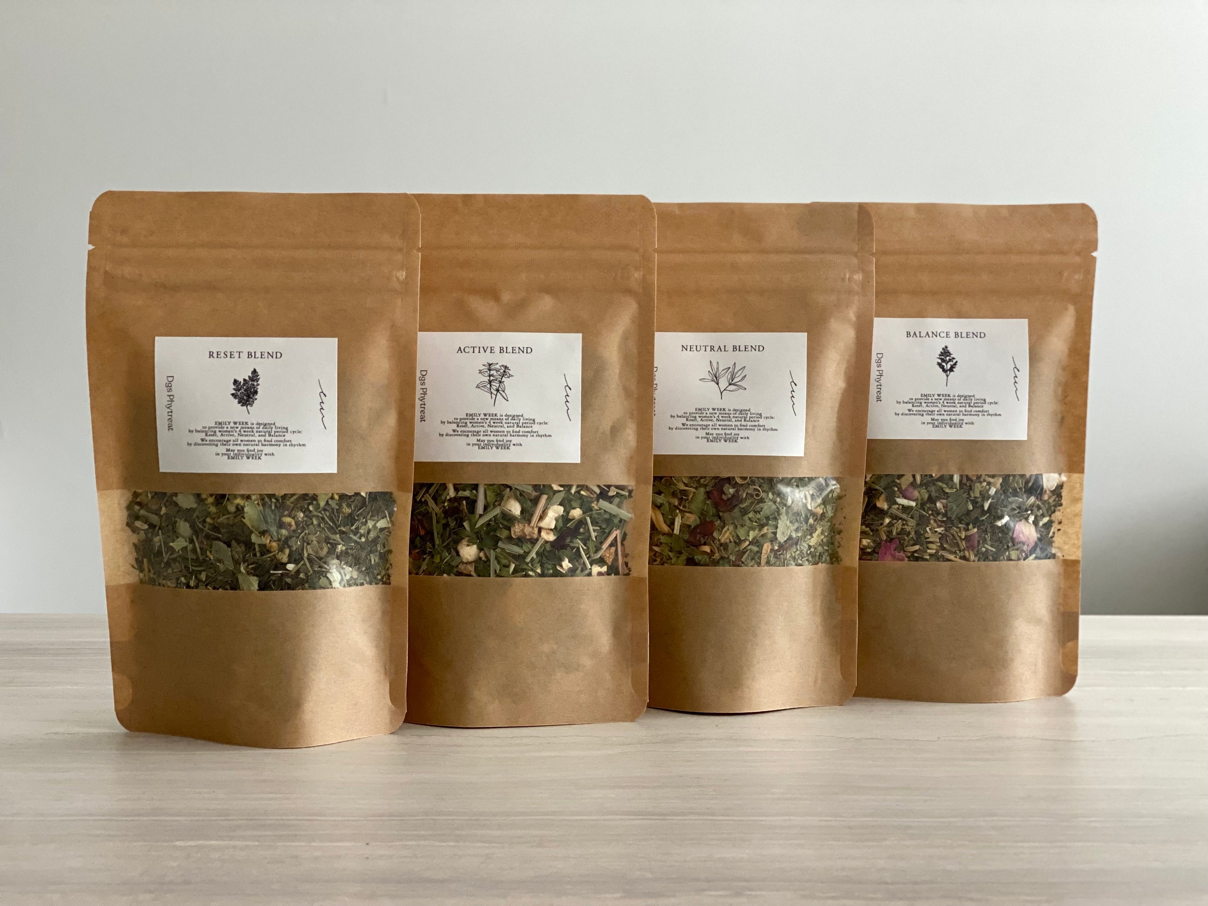 EMILY WEEKコンセプトの根幹にある女性の4週間のバイオリズムに寄り添う4種のブレンドハーブティの他、