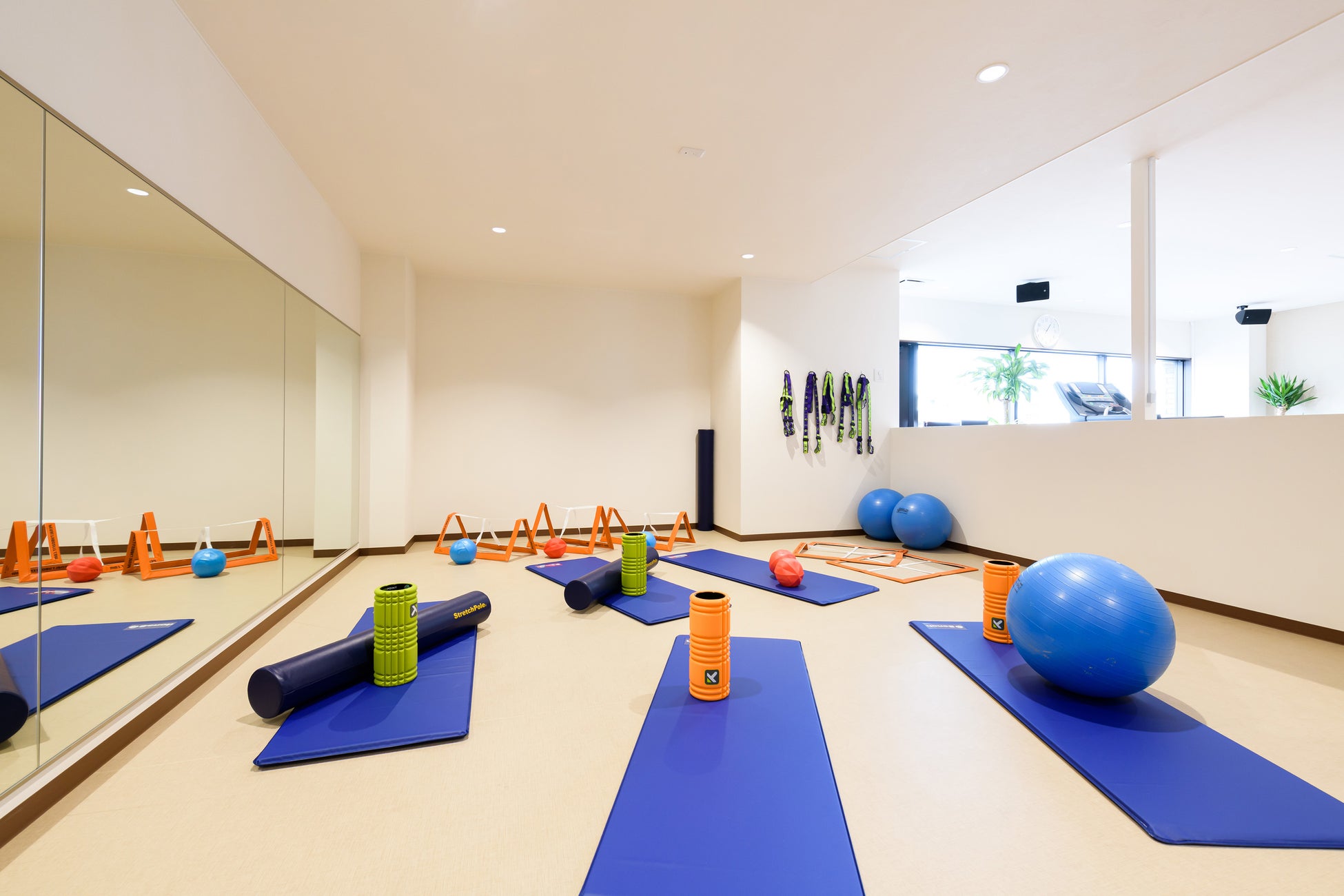 「ラッキーフィットネス」では、トレーニングマシン、ストレッチ用アイテムを取り揃えております。試合前の宿泊では、ストレッチエリアでコンディションを整えるためストレッチでのご使用や、強化合宿でのマシントレーニングなど、お客さまの用途に合ったご使用をご案内いたします。
