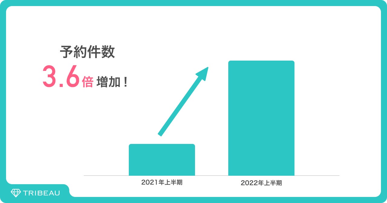 2022年に入ってから、予約件数は順調に伸びており、特にまん延防止が全面解除された3月より増加しています。昨年2021年の同時期からおよそ3.6倍の増加となり、外出の機会が増えたことにより美容への関心が高まっていると考えられます。
