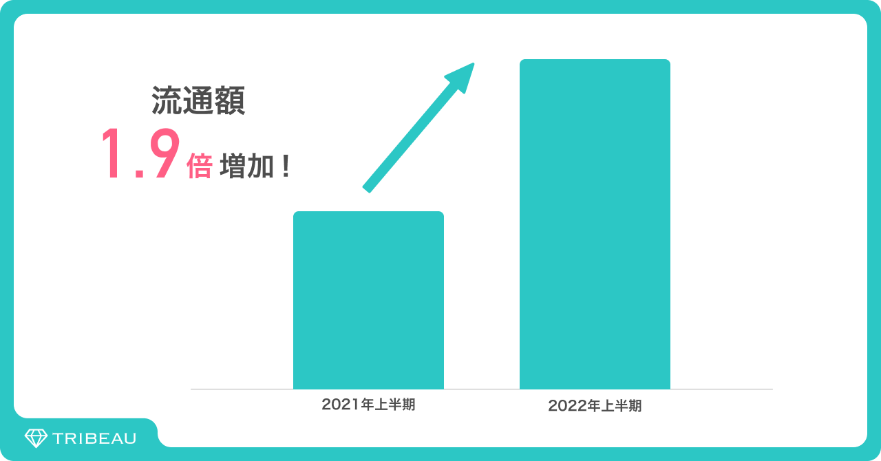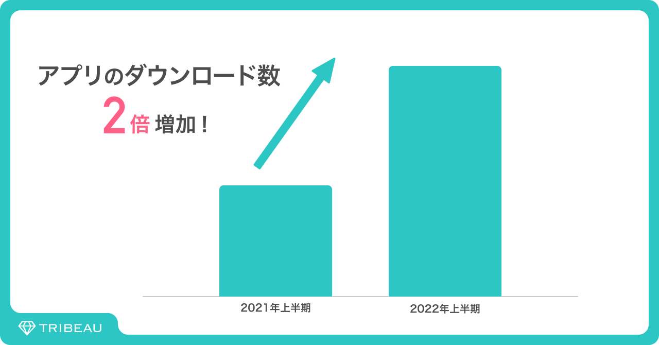 トリビューのアプリダウンロード数も昨年同時期から2倍に伸びており、2022年上半期の6ヶ月間で、2021年全体の8割に達しています。