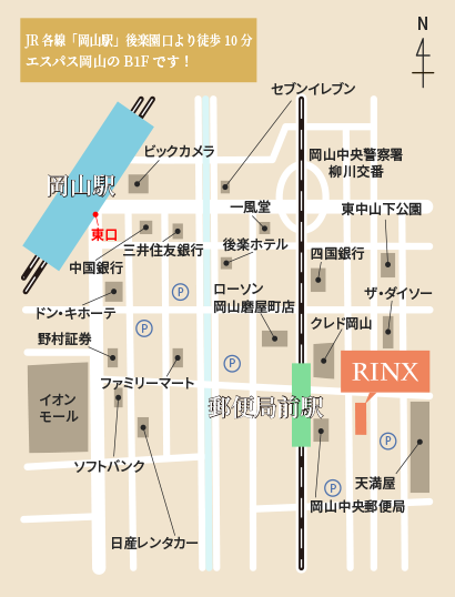 ■住所:〒700-0821 岡山県岡山市北区中山下2-2-1 エスパス岡山B1F