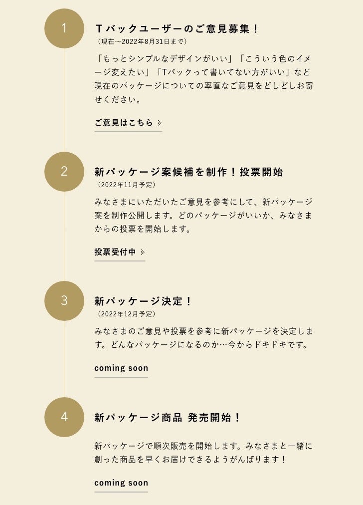 まずは、第一弾としてみなさまの声をもとにTライナーの新パッケージを制作し、全国販売を目指します。