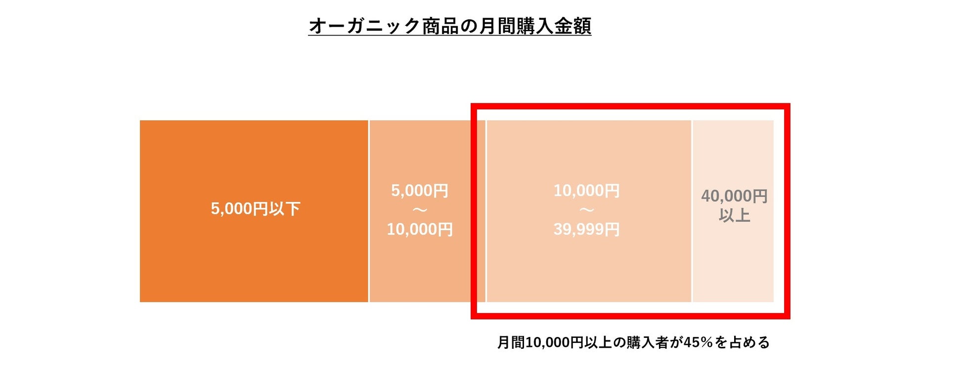 ・オーガニック商品の月間購入金額は、10,000円以上が45%